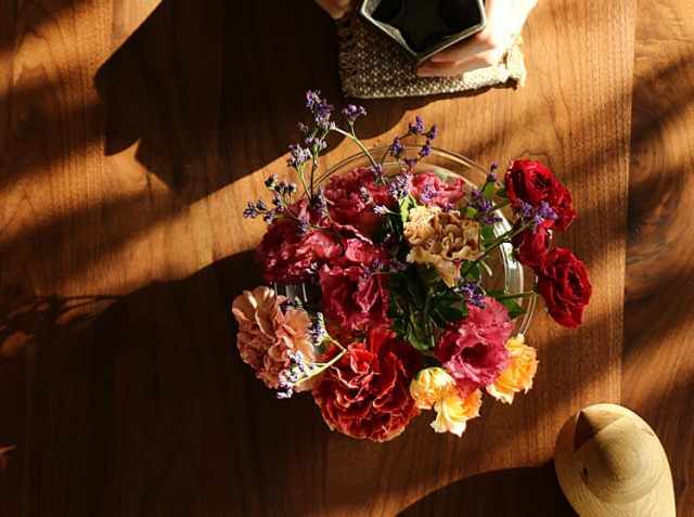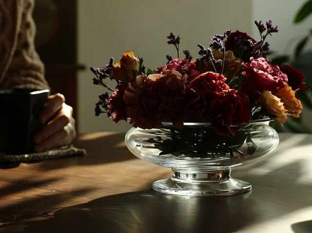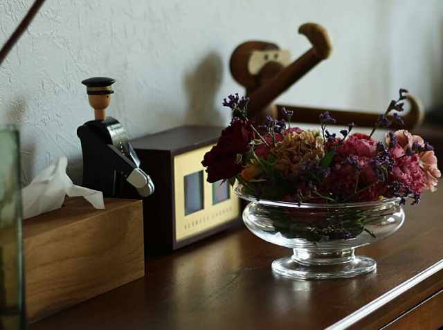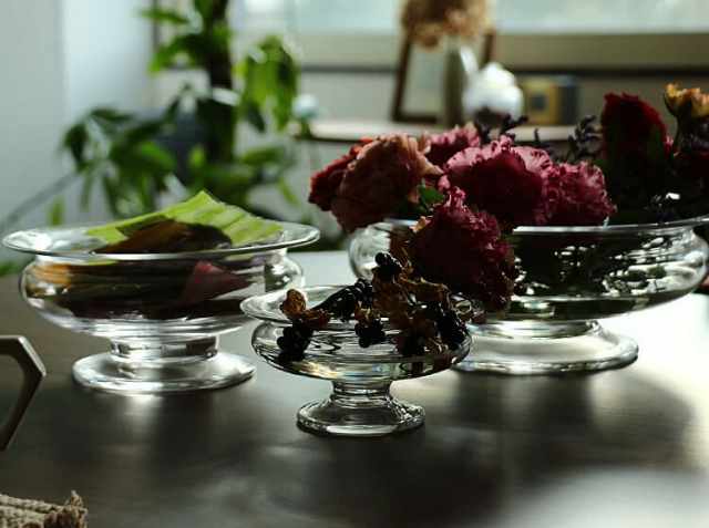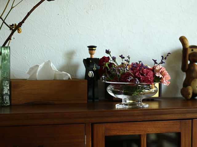 キラリオでは脚付の背の低いフラワーボウルを取り扱っていなかったので、まずどのようにお花を生けようかな?って少し考えました。まずは、お気に入りのお花屋さんで季節の草花を購入し、少し短く枝を切り、1本、また1本と挿していきました。生ける本数が増えてくるとだんだんブーケのような表情に変化してきて、ワクワクする気持ちが増幅♪お花を生ける以外にも、くだものを盛ってみたり、クッキーやマカロンなどのお菓子を盛ってみたり、お気に入りのファブリックを入れて飾ってみたりと、食卓の上やキッチンカウンター、収納棚などに置くだけで、暮らしの中に豊かさを感じさせてくれますよ♪