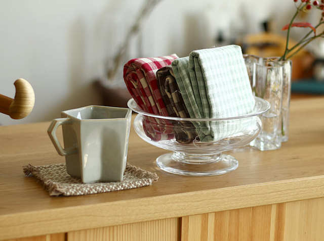 お花以外にもお気に入りのプレイスマットやランチョンマットなどを束ねて入れたり、お菓子やフルーツを盛り付けるセンターピースとしてもお使いいただけます。