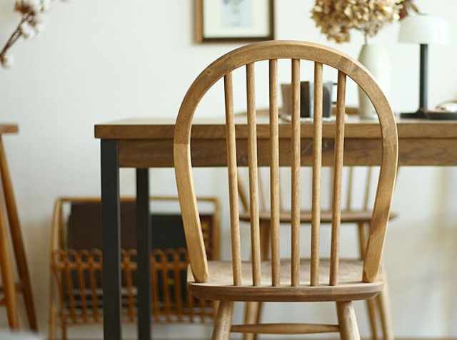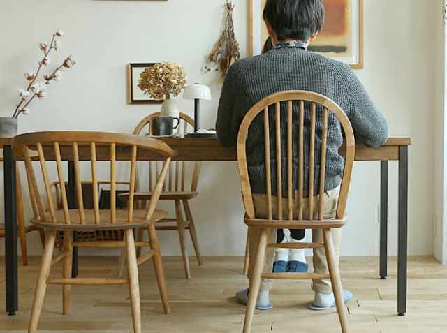 こちらのチェアの特徴は何といっても背もたれの6本のスポーク。イギリスのウィンザーチェアを彷彿させるデザインは、アンティークさを感じる雰囲気を演出してくれます。アンティークな雰囲気が漂うウィンザーチェアのようなデザインは、“座る”だけじゃもったいない。リビングやエントランスに置くだけで、空間の雰囲気をグッと深みのあるものに変えてくれますよ。