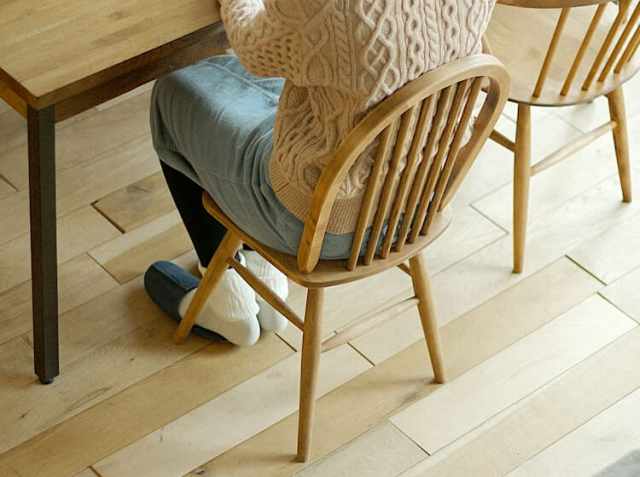 板座って、座っているとお尻が痛くなる印象ってないですか?個人差はあるかもしれませんので、チェアパッドなどを敷くのもいいですがこちらのチェアはバーチ無垢材の木目や節がすごく素敵な印象ですので、何も敷かずそのままのご使用をおすすめします♪