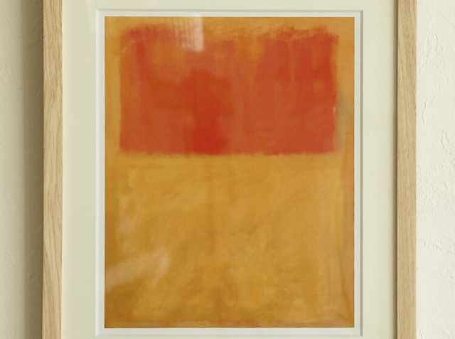 マーク・ロスコの作品の特徴は、“呼吸する色彩”と言われる色彩の表現技法。「薄塗り」と「重ね塗り」が、下地が生かされた濃淡のある深い色彩を作り出しています。何度も塗り重ねて厚みをつけた部分とそうでない部分によって作られた半透明の色の層の違いが画面に振動を起こし、色彩がキャンバスの中で呼吸しているように感じさせています。主張しすぎない素朴なアートとなっていますので、ナチュラルなお部屋にぴったりですよ。
