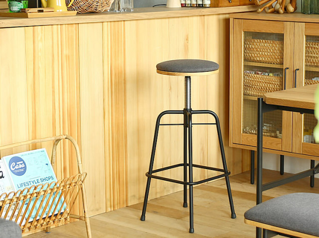 重厚感のあるスチールと天然木ラバーウッドとファブリックを組み合わせた座面で、お部屋をヴィンテージ感溢れる空間にしてくれるハイスツールとなっています。