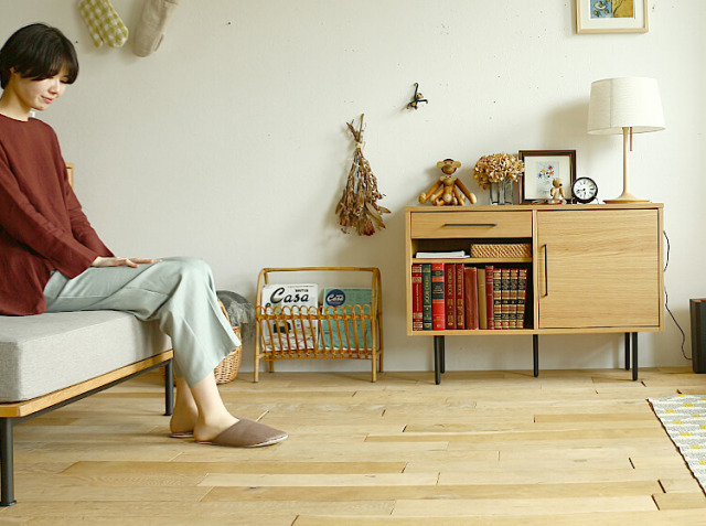 一見するとシンプルな見た目だけど、どこか味わいのある佇まいは、ずっと使いたくなる雰囲気。幅100cmというサイズ感は、色んなお部屋にマッチするサイズ。温かみを感じるオーク材には、自然の木目を最大限活かすオイル塗装が施されています。オーク材の良さをいろんなお部屋でお楽しみください♪