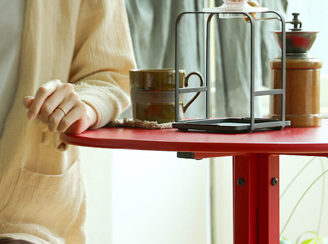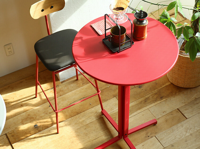 ほっこりティーテイムを演出してくれる円形ハイテーブル、Locali(ロカリ)。ハイテーブルにハイチェアーを合わせると、雰囲気のいいカフェの空間が出来上がりますよ。カラーは、レッド、グレー、ブラックの3色からお選びいただけます。