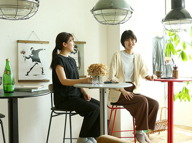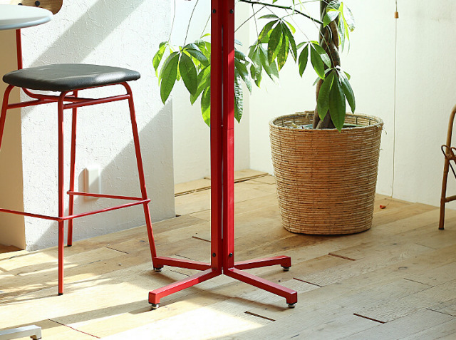 今回の撮影で合わせてコーディネートしたハイチェアの座面高は65cm。テーブルの高さは93.5cm。女性スタッフでも無理なくくつろぐことのできる高さとなっています。またチェアーがなくても立ちながらくつろぐテーブルとして使ったり、スタンディングしながらPC作業をしたりするテーブルとしても活躍するアイテムです。スチール製ということもありインダストリアルやヴィンテージスタイルのお部屋には相性は抜群ですね♪