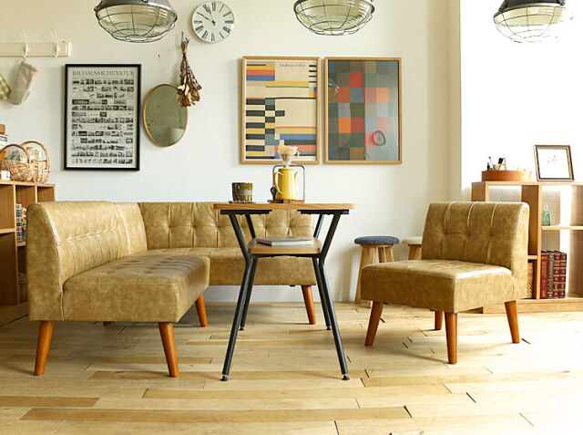 同シリーズのダイニングテーブルや2人掛けソファーなどと合わせて使えば、統一感のある落ち着いた雰囲気のダイニングの完成ですね。ただ同系色のカラーでインテリアを揃えると無難にまとまりますが、単調になりすぎることもありますので、天然木を使った収納やポスターなどの小物に差し色を取り入れると、程よいメリハリが生まれて落ち着きのあるおしゃれな空間になりますよ。