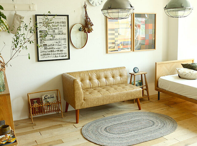1人暮らしやワンルームなどの限られたスペースだからソファーを置きたいけど、諦めている方にもピッタリのコンパクトサイズ。大きなソファを置くと、どうしてもお部屋が窮屈に感じてしまいます。そこでおすすめなのが、Keit(ケイト)のカウチソファー。キャメルカラーで、脚部がスラリと長いことでヌケ感が生まれてお部屋の圧迫感を軽減してくれますよ。