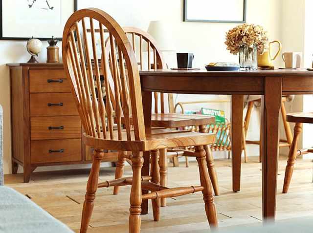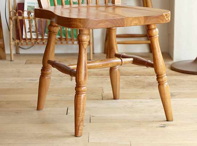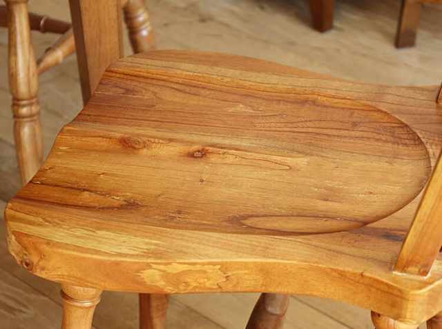 こちらのチェアを最初に見たときの印象は、木目のきれいさとイギリスの伝統的チェアであるウィンザーチェアのようなスタイリッシュなデザインが目に飛び込んできます。 素材には、きれいな木目でやさしい表情が特徴のミンディー無垢材を使用していますので、使えば使うほど経年変化が起こり、自分だけのオリジナルファニチャーに変化していくのも楽しみですよ♪