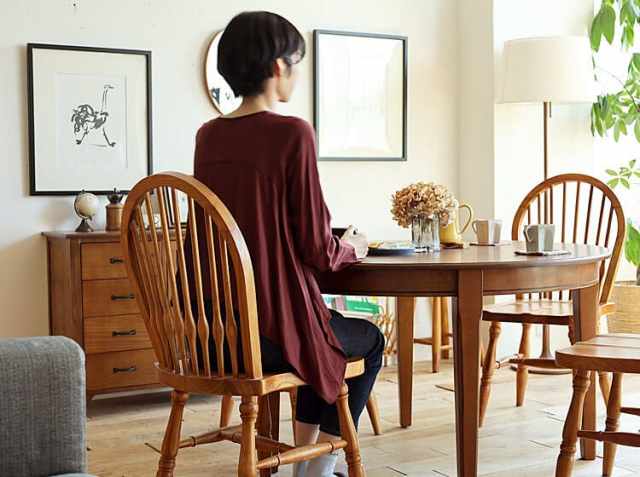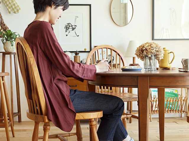 こちらのチェアの特徴は何といっても背もたれの8本のスポーク。イギリスのウィンザーチェアを彷彿させるデザインは、アンティークさを感じる雰囲気を演出してくれます。アンティークな雰囲気が漂うウィンザーチェアのようなデザインは、“座る”だけじゃもったいない。リビングやエントランスに置くだけで、空間の雰囲気をグッと深みのあるものに変えてくれますよ。