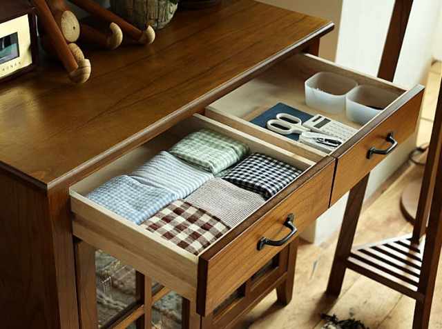 リビングやダイニング、寝室周りの小物を収納するのに便利な2杯の引出し。例えば、お気に入りのお弁当を包む風呂敷などを整理して収納したり、雑多に散らかりやすい文具などを収納したりするのにとても便利♪※引出しは、幅30cm×奥行き30cm×高さ5.5cmとなっています。