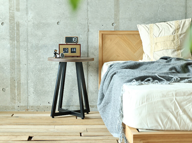 手の届くところに必要なものを置けるサイドテーブル。ベッドやソファ横にあれば、スマホにリモコン、マグカップなどを置くのに丁度いいですよ。こちらのサイドテーブルの高さは50cm。