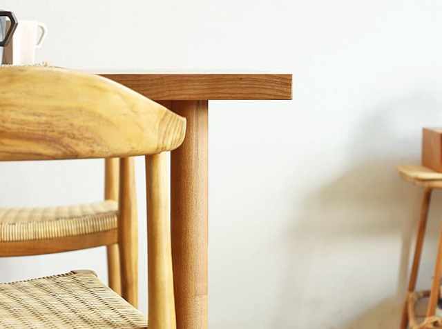 ダイニングテーブルの天板部分は、安定感のある厚み3.5cmとなっています。また木目はアッシュ材特有の温かみのある風合いとなっています。