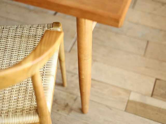 こちらのテーブルの特徴は幕板部分。幕板とは安定感と木の反りを防止するもの。その“幕板”を少し内側に付ける設計となっています。内側についているということは、座ったとき、脚元周辺にゆとりがうまれて圧迫感がでないことでストレスなくお食事や団らんをお楽しみいただけます。