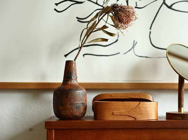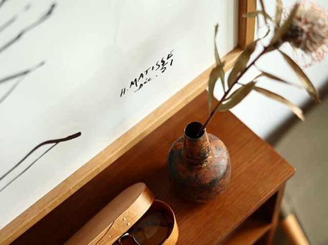 ラックなどの棚にそっと置いておくだけでも絵になる花器。買ってきたドライフラワーを挿しただけなのに、生けた姿がかわいらしく見える。ドライを生けるというのはなんだかセンスが求められる感じがして苦手な方も多いかもしれませんが、こちらのフラワーベースは、お花屋さんで見つけたお気に入りのドライや植物を挿すだけで、インテリアとして映えるデザインとなっていますので、これからお花や植物を飾ってみたいという方には是非おすすめのフラワーベースだと思います。
