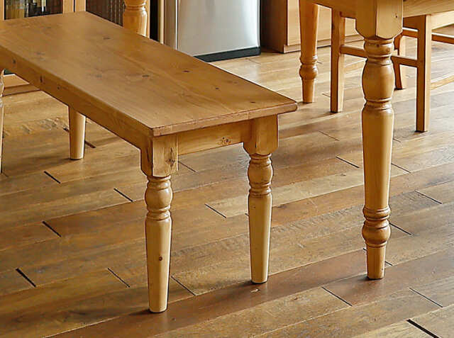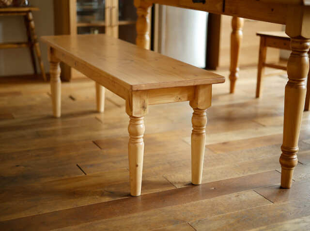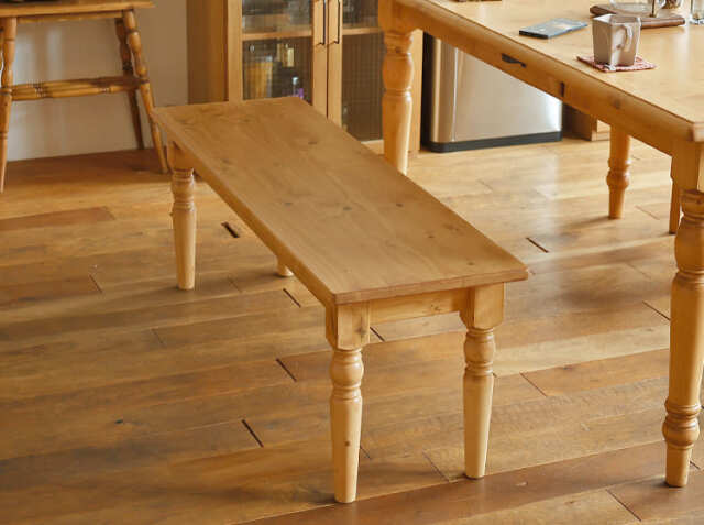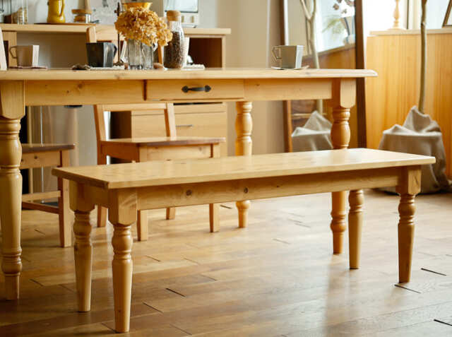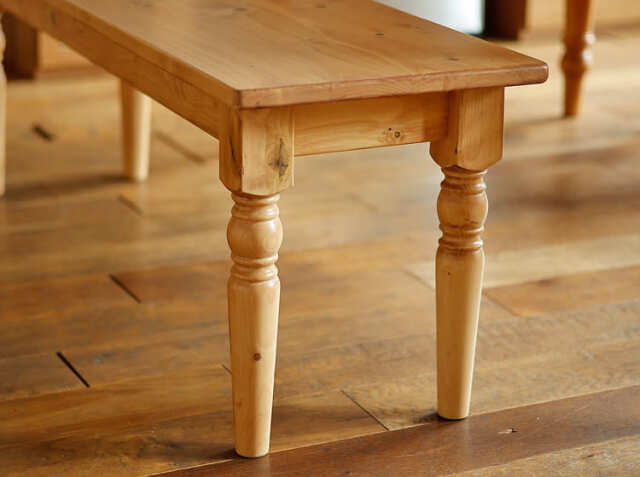 直線的なデザインがスタイリッシュで、温かみを感じるパイン無垢材を使ったダイニングベンチ、Giocoso(ジョコーソ)ですが、脚部にはアンティーク家具でよく見る“ろくろ脚”を採用しています。ろくろ脚はクラシカルの雰囲気を感じることができますよ♪