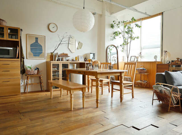 家族やお友だちが集まる食卓。会話をしながら、お食事をしたり、珈琲を飲んだりと楽しく過ごす場所を、天然木の優しい雰囲気が漂うダイニングインテリアで落ち着いたカントリーテイストの空間をつくりませんか?