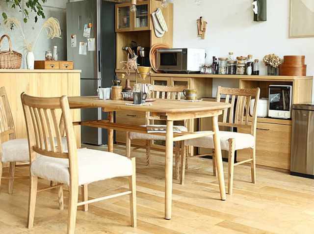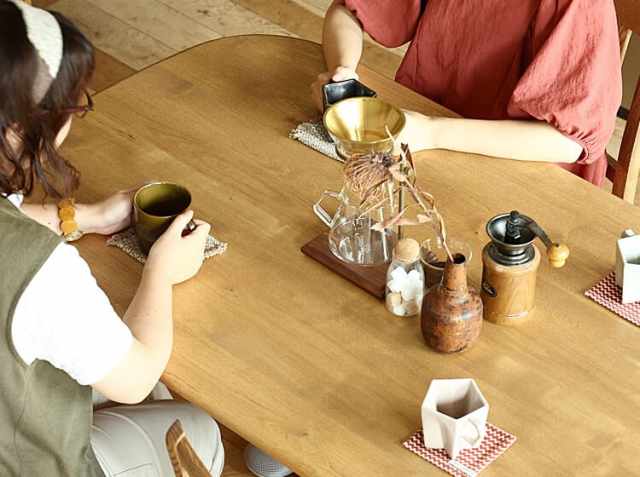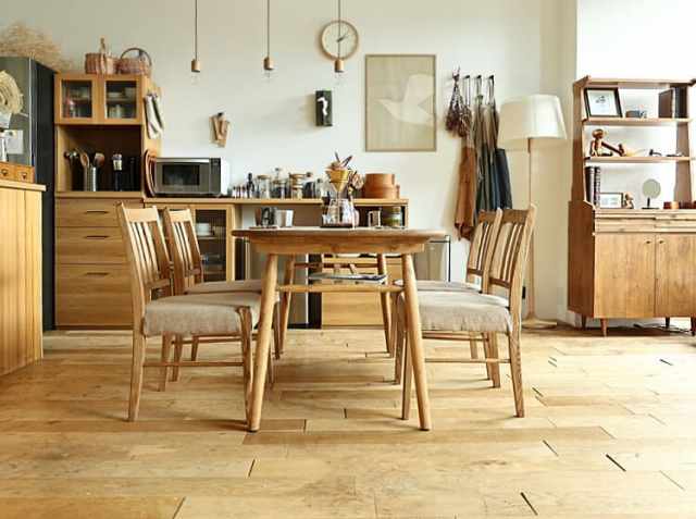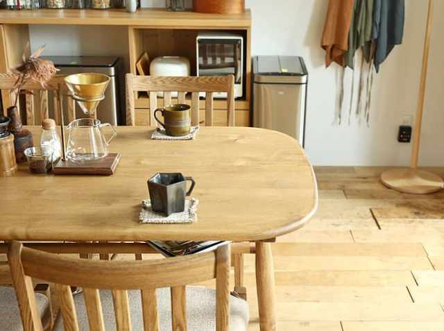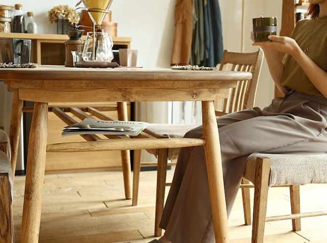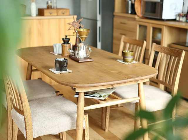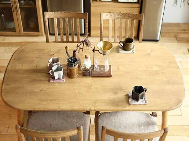 ナチュラルテイストのダイニングテーブルは、お部屋に置くだけでお部屋のイメージを変えてくれます。お家で楽しむいつものティータイムやお食事の時間を彩ってくれますね。