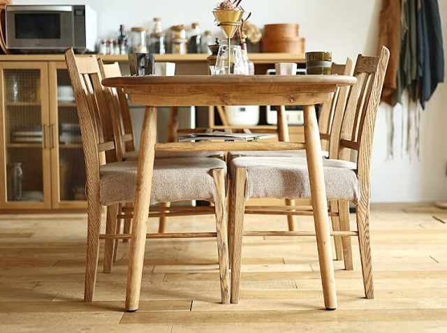 家族やお友だちが集まる食卓。会話をしながら、お食事をしたり、珈琲を飲んだりと楽しく過ごす場所を、天然木の優しい雰囲気が漂う円形のダイニングテーブルで北欧テイストの空間をつくりませんか?