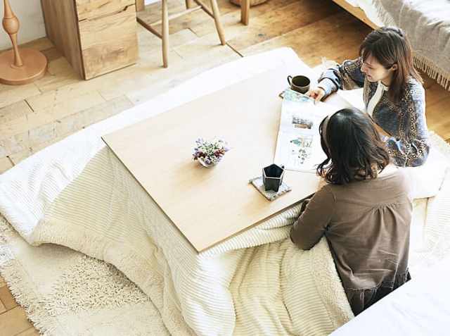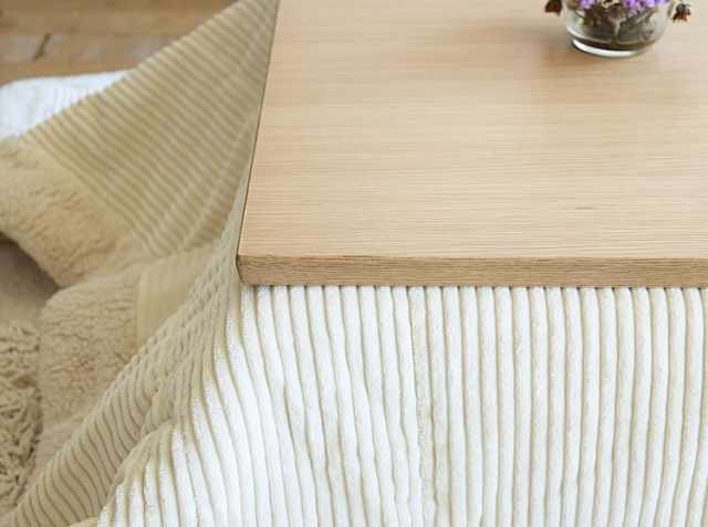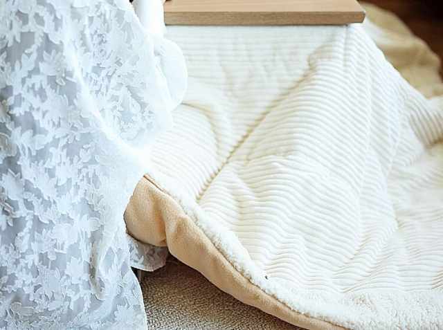 薄掛けタイプのこたつ布団の特徴は、端が体のラインに沿いやすく、空気が出入りする隙間を埋めていただけますので、寒い空気の侵入を防いで暖かさをキープしてくれますよ。