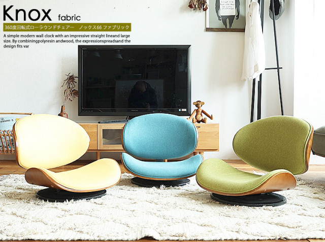 ブラウンの木目とカジュアルなファブリック生地がナチュラルな雰囲気を醸し出す、北欧テイストの360度回転式ローラウンドチェアー、KNOX(ノックス)ファブリック。チェアーに座りながら360度回転♪回転式のローラウンドチェアーは、いちいち椅子を動かさなくても、くるっと横に方向を変えることができますので、とても便利で移動がらくらくですよ。カラーはお部屋のテイストから選べるイエロー、グリーン、ブルーの3色展開となっています。