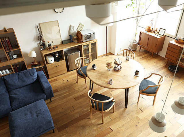 ダイニングテーブルって、お部屋の中心的存在。その中心の家具が丸い形だと、お部屋全体の印象がやさしげで柔らかさを感じさせてくれます。角張った四角いテーブルよりも、角が取れた丸型のダイニングテーブルはふんわりと優しい空間になるところがおすすめです♪