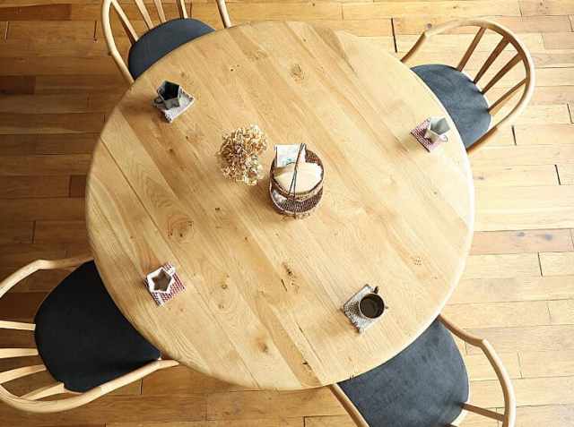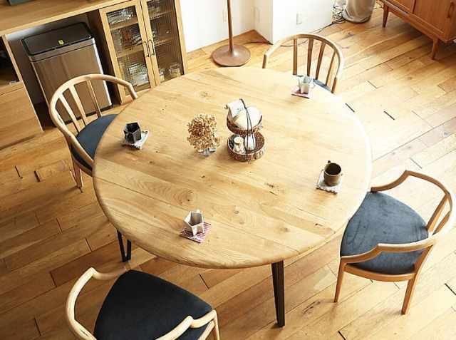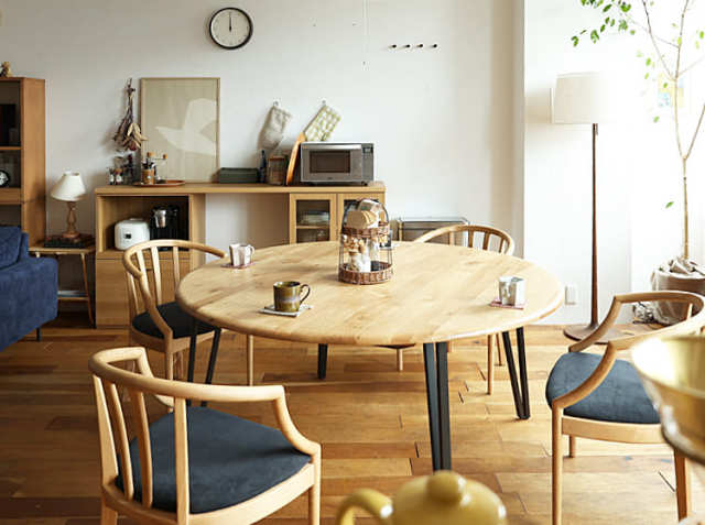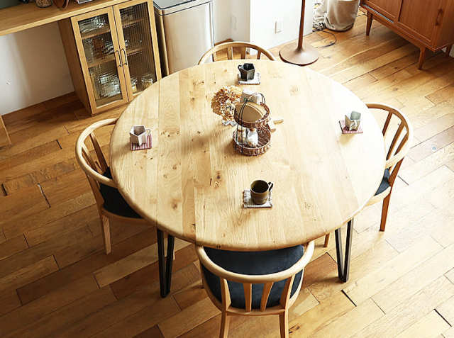 家族やお友だちが集まる食卓。会話をしながら、お食事をしたり、珈琲を飲んだりと楽しく過ごす場所を、天然木の優しい雰囲気が漂う円形のダイニングテーブルで北欧テイストの空間をつくりませんか?