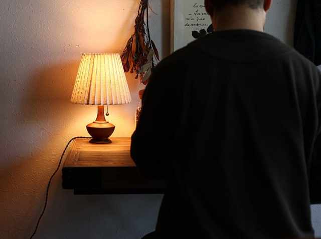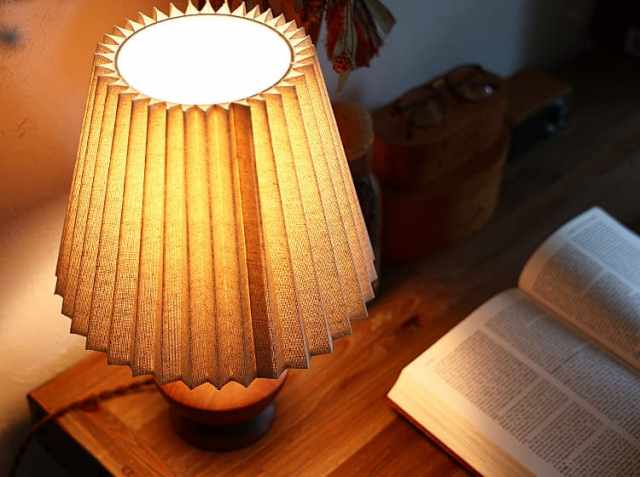 温かみのあるファブリックシェードからこぼれ出る、柔らかな光は、見ているだけでも心が安らぎ、就寝前のベッドサイドや、書斎のデスク、ソファーでの読書に使う照明としてはもちろん、間接照明としても大活躍するアイテム。