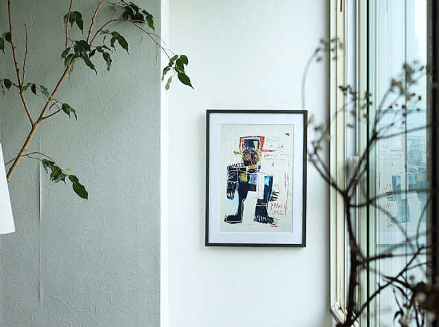 窓際の光が差し込む場所に飾ると、まさにバスキアの個展をお家で開催しているかのような雰囲気に。
