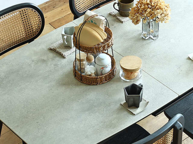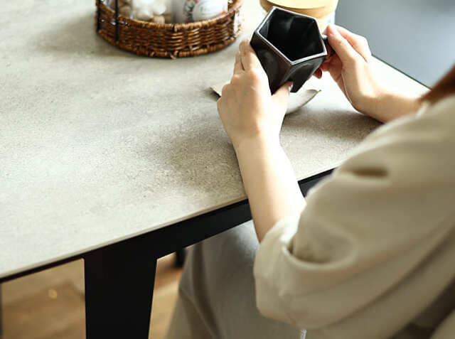 「防水性」や「耐薬品性」が高い点も、セラミック天板の魅力。水分の吸収率はほぼ0%で、油や調味料も染み込みにくいため、お手入れは軽く拭くだけでOK。傷つきにくく、汚れにくいため、お子さんがいるご家庭でも安心して使えます。またセラミック天板であればアルコールも問題なく使えますので清潔にお食事を楽しむこともできます。またセラミック天板は100%天然素材のため、食品が触れても心配ありませんよ。