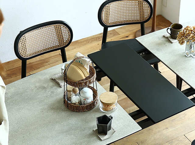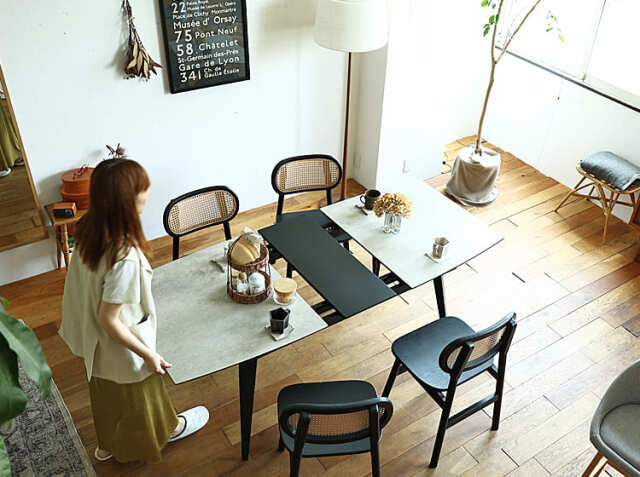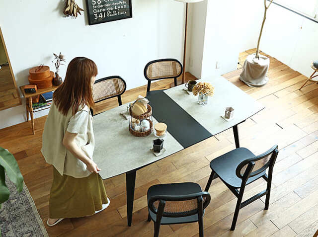 生活スタイルが変化するたびにテーブルを買い替えるのではなく、長く使えるテーブルが欲しい。そういった方におすすめなのが伸長式ダイニングテーブル。最初は140cmサイズで3人から4人でゆったりとカフェタイムを楽しみましょう♪