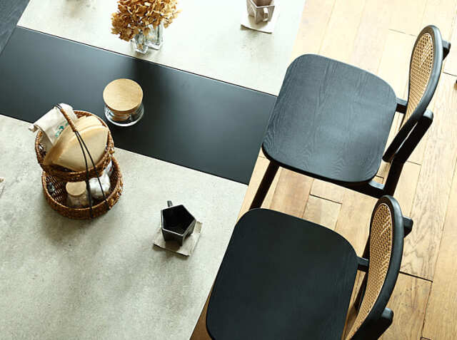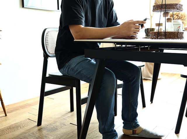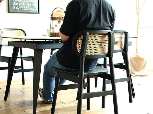 テーブルの下に、チェアが収まるかどうかは結構重要なポイント。収まらない場合は、場所をとり空間に圧迫感が出てしまいますし、お掃除のときもとても手間がかかります。同シリーズのチェアと合わせてコーディネートすれば、きれいに収納ができて見た目にも圧迫感がなくきれいな空間に仕上げてくれますよ。