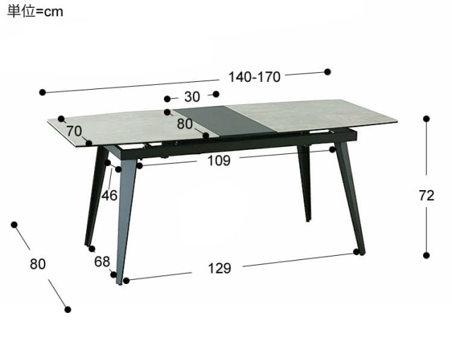 | サイズ | 幅 140-170cm × 奥行き 80cm × 高さ 72cm |