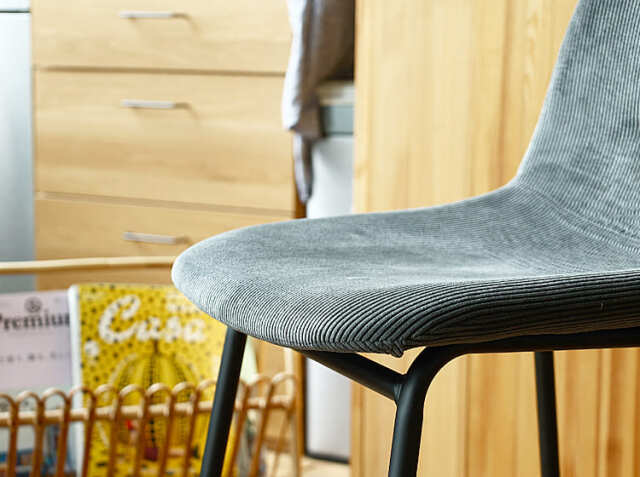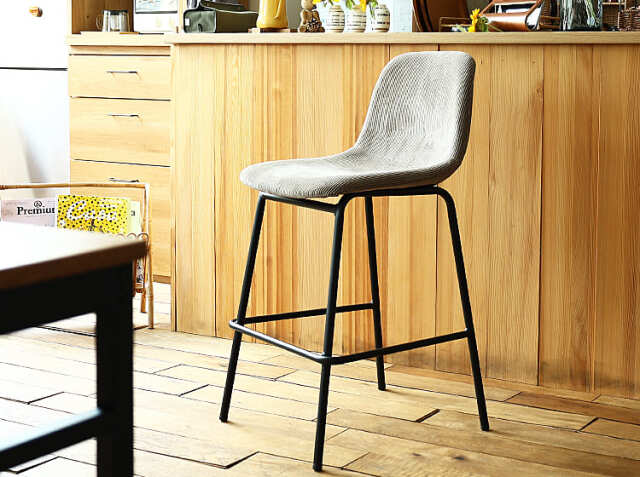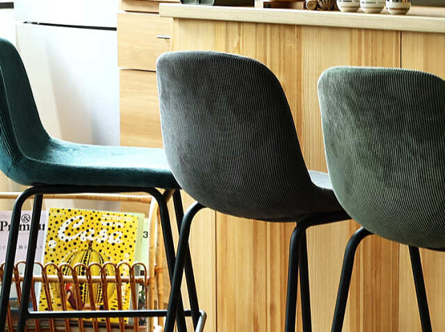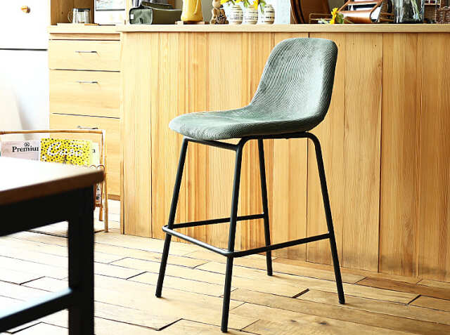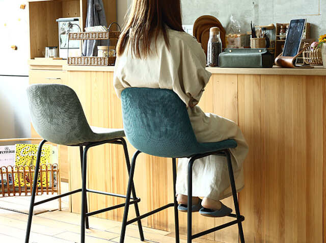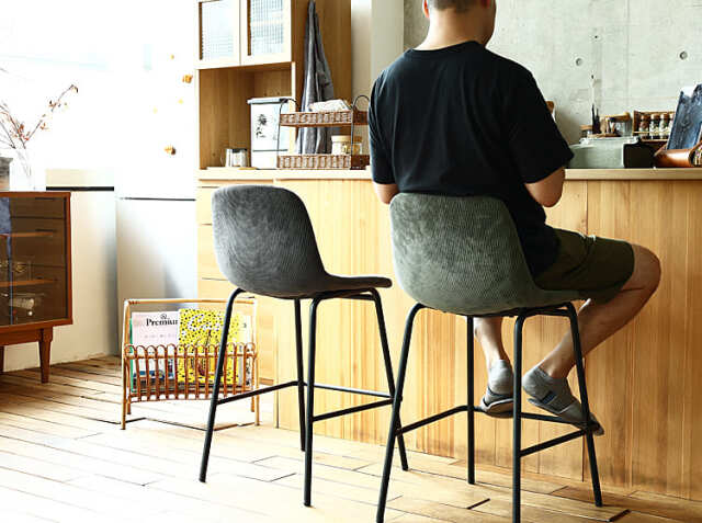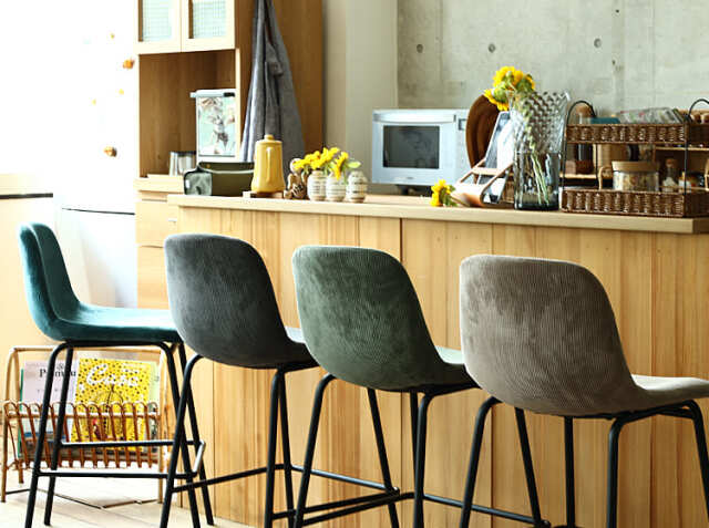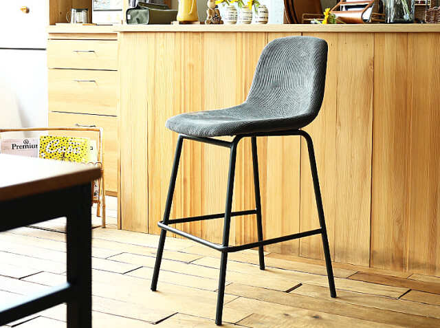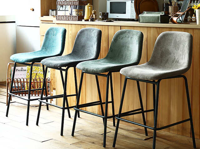 さらさらな肌触りのコーデュロイ生地と丸みを帯びた座面が特徴のカウンターチェア、Nola(ノラ)。細身のブラックスチールフレームがお部屋をモダンでスタイリッシュな空間に仕上げてくれますよ。カラーは、ダークグレー、カーキ、サンドベージュ、ターコイズブルーの4色からお選び頂けます。