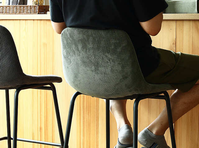 こちらのカウンターは背もたれがあるタイプ。背もたれがあると、背中を支えてくれるため姿勢を保ちやすく、長時間座っても疲れにくくなっています。弧を描いた背もたれ部分は、背中をもたれるとフォールド感があり安心してくつろぐことができますよ。カフェタイムをのんびり、ディナーやお酒を楽しんだりといろんなシーンで快適に過ごせますよ♪