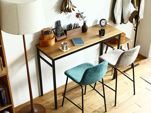 無骨な雰囲気のアイアンフレームは、ラインが細くヌケ感がありますので、お部屋においても圧迫感はそれほどありません。1脚でも複数脚でも、色味を統一しても、バラバラで置いてもカウンターキッチンを上質な空間にしてくれますよ。