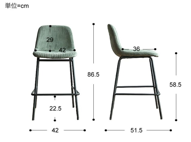 幅 42cm × 奥行き 51.5cm × 高さ 86.5cm(座面高:58.5cm) 座面幅:幅42cm × 奥行き36cm |