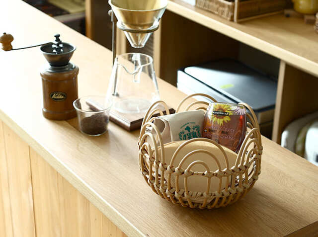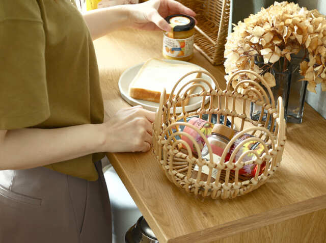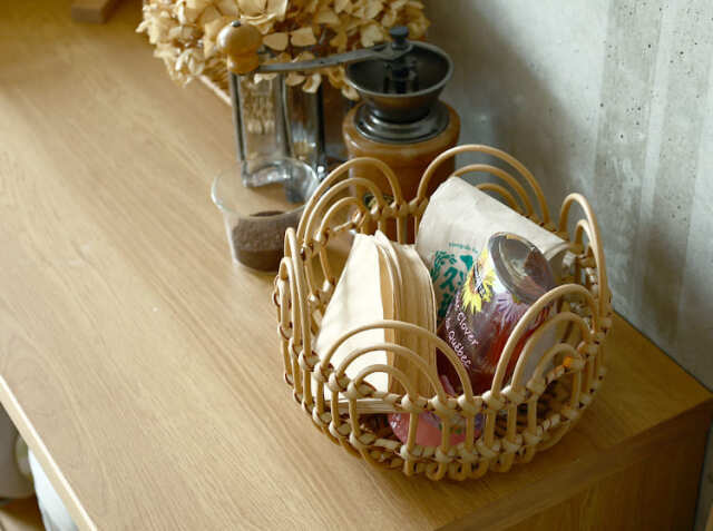 朝食の際に使うジャムやはちみつなどの調味料や、コーヒーを淹れるための豆やフィルターなど、よく使うものをひとまとめにぎゅっと詰め込めば、バスケットひとつを食卓に運ぶだけで済むので、忙しい朝にも大活躍してくれるアイテムです。