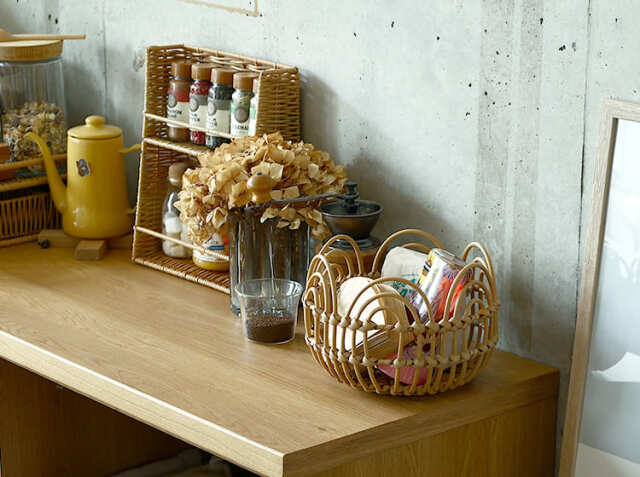 見慣れたキッチンにかご収納を取り入れることで、使い勝手よく、見た目もすっきり暮らしを整えることができます。