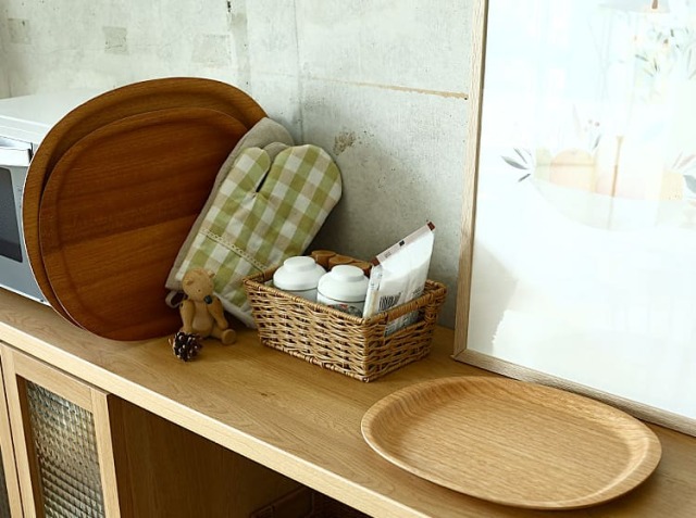雑多な小物もこのバスケットにまとめてポンと置くだけで洗練された雰囲気を演出してくれますよ。