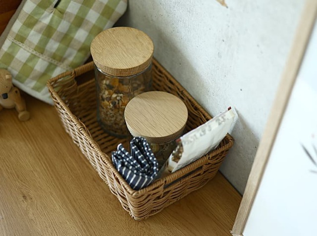 お部屋の一角にカゴ収納を取り入れてみてはいかがでしょう。
