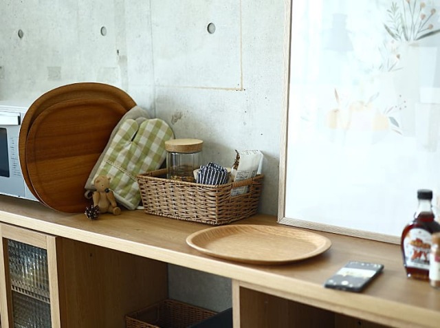 調味料を入れるキャニスターやランチョンマットなどを入れるのに、ぴったりなサイズ感です。