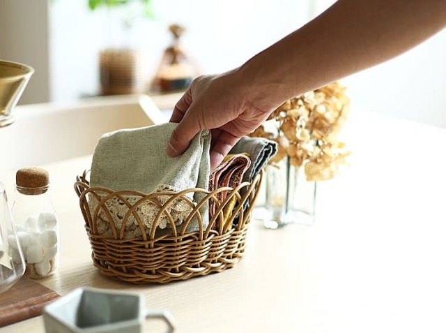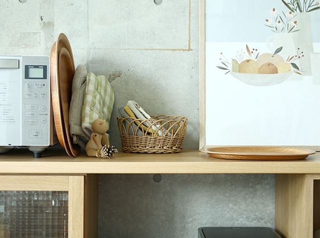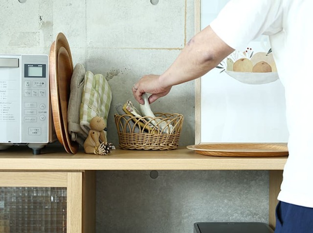 ランチョンマットや食材のストックなどは、そのまま置いておくと雑多な印象になることもしばしば……。