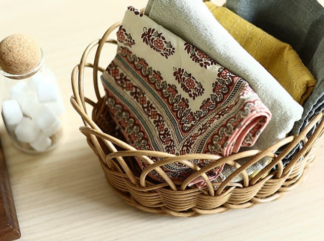 ※食品を入れる際は包装された状態で入れてください。 ※手編み商品の為、サイズや仕様に個体差や歪みがございます。また素材の色差はこの商品の特徴です。ご了承の上、お買い求めいただけますようお願いいたします。 経年劣化による退色が起こる可能性がございます。 ※過度な力を加えると変形や破損の原因になります。 ※食洗器、電子レンジでの使用はできません。 ※水平で安定した場所に置いてください。 ※小さいお子様やペットの近くに置かないでください。 ※濡れたままにしておくと劣化の原因になります。水洗いした後は必ず乾いたタオル等で水気を拭き取って、風通しの良い場所でしっかり乾燥させて下さい。 ※洗剤、消臭剤、漂白剤の使用や、アルコールを直接吹きかけることは変色、変質の原因になるためおやめください。 ※撮影環境やお使いのモニター環境により色合いが異なって見える場合がございます。ご了承下さい。 |