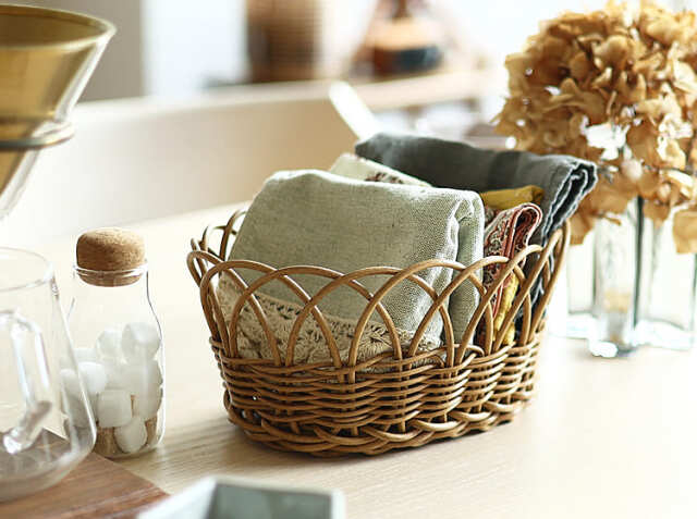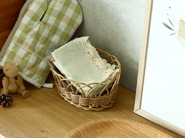 無造作に置いておくと雑多な印象になってしまう小物も、ナチュラルな雰囲気のかごに収納するだけで、お部屋が整って見えますよ。ざっくりと詰め込むだけで洗練された雰囲気に見えるので、片づけも楽しくなりそうです♪
