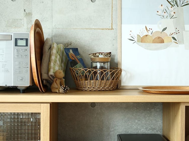 よく使う調味料や食材のストックなどは、そのまま置いておくと雑多な印象になることもしばしば……。