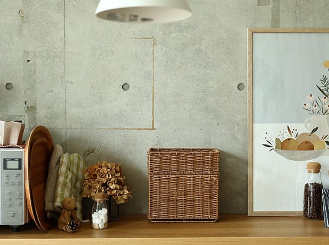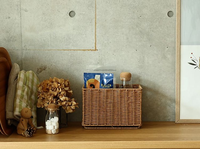 雑多な小物もこのバスケットにまとめてポンと置くだけで洗練された雰囲気を演出してくれますよ。