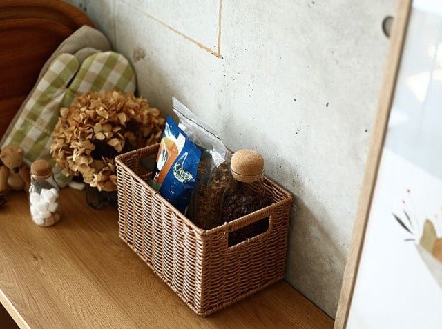 お部屋の一角にカゴ収納を取り入れてみてはいかがでしょう。
