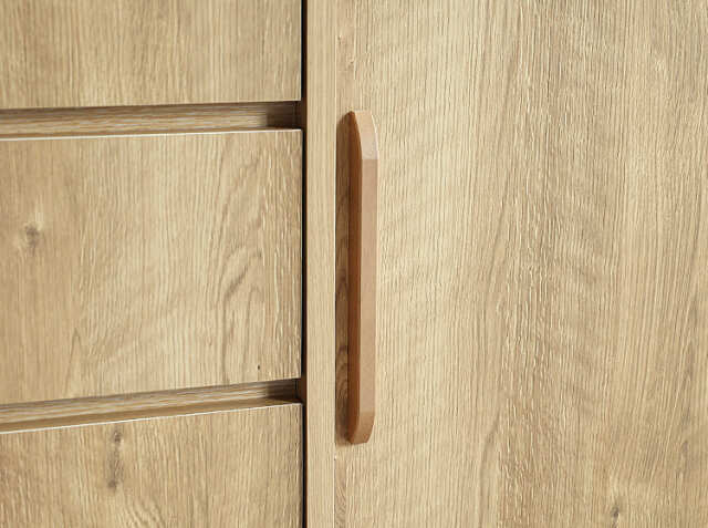 天板・側面・扉:MDF、プリント化粧板 脚:ラバーウッド無垢材、スチール 取っ手:スチール(ナチュラル塗装) |