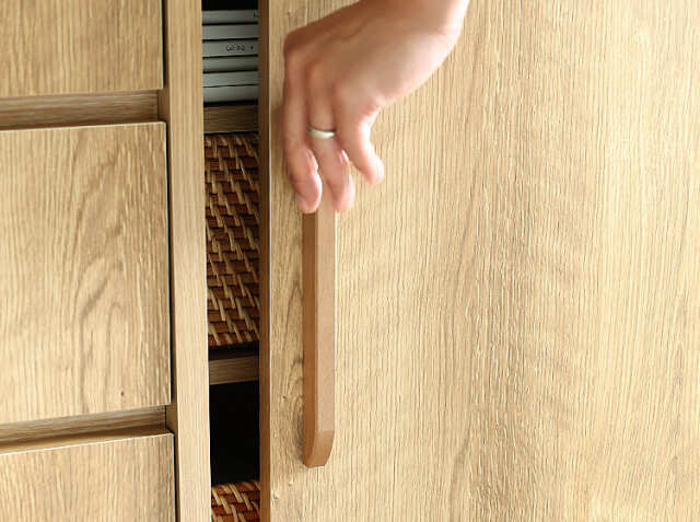 引出し収納をあけるときは、引き出しやすいように溝が設けられています。