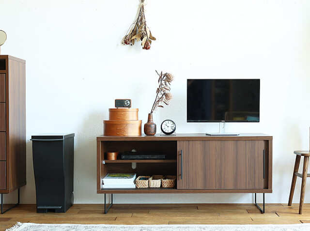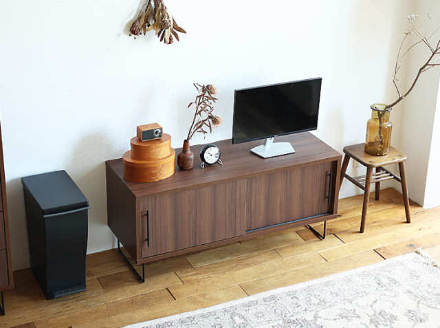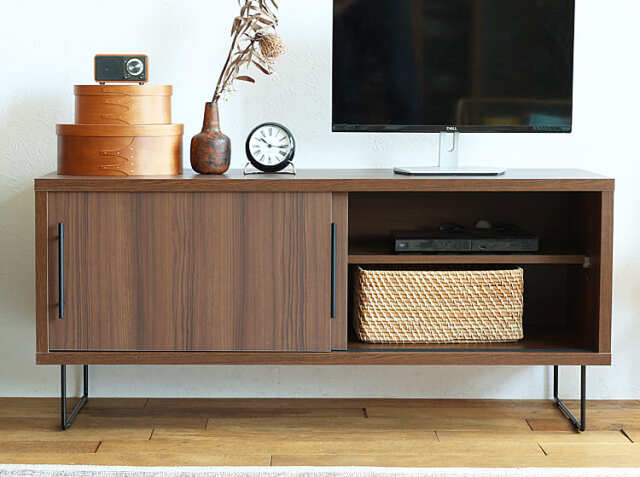ワンルームからご家族でのご使用まで、幅広く使えるのが特徴の120cmサイズ。24型〜43型のテレビがバランス良く置けます。AV機器などを収納するスライド式の扉収納にDVDなどもまとめて収納しておくだけで、リビング周辺が整理されて、すっきりと片付きますよ。